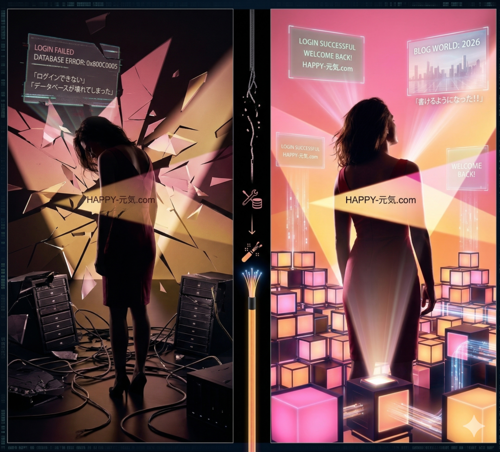 実は、前にこのブログのデーターベースが壊れしまって、ログインできなくなってしまっていたんです。 ログインできない → 記事がかけない → 一生懸命直す → 直らない →記事を書かなくなるという感じでした。